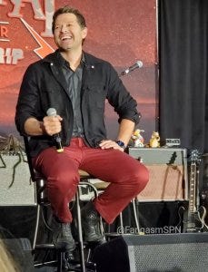 The other odd part of this con was that the schedule was switched around from what we’re all very accustomed to – there are always things that happen on Saturday (like Misha Collins’ panel) and on Sunday (like the Jared and Jensen gold panel and main panel). Because Jensen was shooting on the Rust film and had to be back on set for Sunday, he appeared on Saturday instead. That caused ridiculous amounts of fan theorizing and conspiracy theory tossing around about why the switch was happening – which was for exactly the reasons put forth, Jensen’s professional obligations – i.e., filming on Sunday. It was different to have solo panels for Jensen and Jared instead of a joint one, and fans had different opinions on that, some happy to have an hour with their fave and others missing the banter that always comes with a J2 panel. In other words, as always, your mileage may vary.