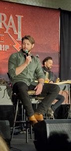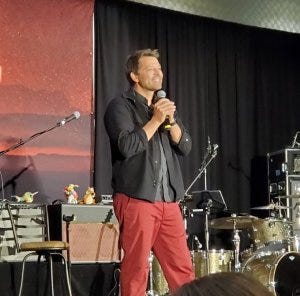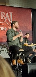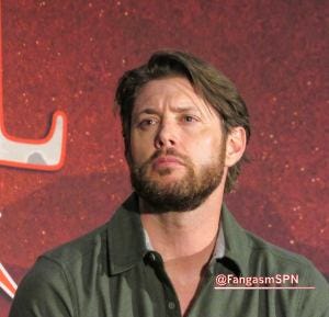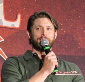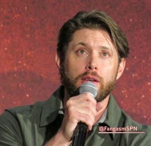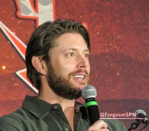 Jensen talked excitedly about his role on Rust at the con, including almost being given a horse named Baby (Bebe) and finally ending up on the biggest one named Spanky, which now feels very different, but at the time it was nice to see him so excited.