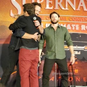 Jared, Jensen and Misha were all reunited onstage, and I have to admit I teared up. It felt like all was right with the world once again, at least for a little while.