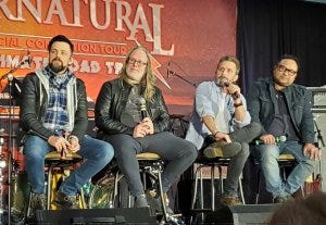 The last panel of the day belonged to Louden Swain, when Rob Benedict brought the rest of the band with him onstage – Billy Moran, Stephen Norton and Mike Borja. They pondered what tattoos they might get and where, decided that Chuck needs his own spinoff, and fielded a request from a fan to play her prom.