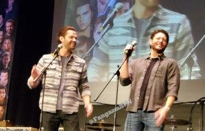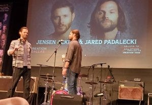 J2 leap onstage! @jarpad @JensenAckles #SPNDallas pic.twitter.com/KQf4Ig51RR