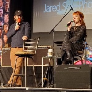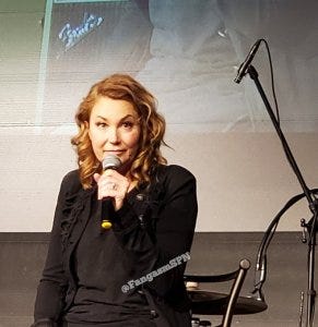 Briana Buckmaster couldn’t be at the con because she’s filming a movie, but Kim Rhodes had her join the panel a bit through Facetime anyway!