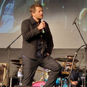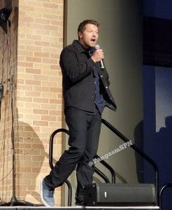 He has an adorable smile, and we saw it alot at this con. Another fan asked what Cas learned from the pizza man. Misha, without missing a beat, turned to the Castiel cosplayer’s wife.