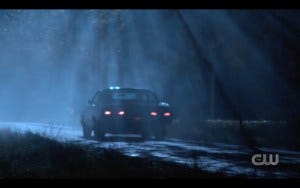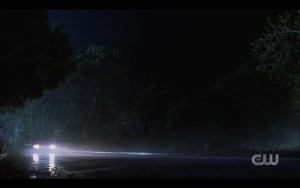 The last scene of the brothers is one of my favorites of the last seasons. Sam and Dean in the Impala, which is my favorite way for an episode to end. It’s night, the boys having had to do something tragic but heroic, saving the day even if it cost them to do it.