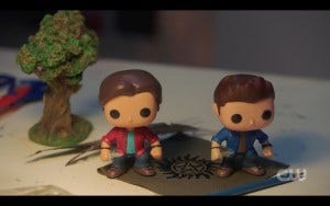 Ackles gives us a close up shot of the Sam and Dean Pop Funko dolls that most of us have somewhere in the house, their bobbleheads shaking in what looks like trembling fear as Chuck pounds the keys. It was a fitting ending for a tightly directed episode – Ackles more than held his own in the director’s chair this time out!