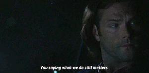 Dean: I felt like that. After Chuck, back at the crypt. But you know what brought me back? You did. By saying that what we do still matters.