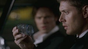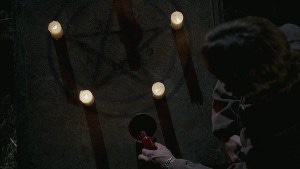 They go to a graveyard at night, Sam setting up a ritual circle, pouring liquid into a cup, adding herbs, setting up candles and a pentagram. Just your typical night for a couple of Winchesters.