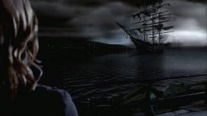 They wonder who Alex is, whether she’s another player in this case. Dean gets to ask the quintessentially Supernatural question, “What’s the lore” and Sam gets to answer. Seems every 37 years there are reports of a 3 mast clipper ship in the bay that disappears, accompanied by people drowning who weren’t even in the water. And that matches the lore of old wrecks that have been sighted and are death omens, like the Flying Dutchman.