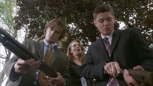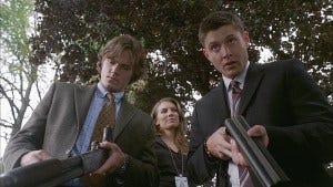 Dean, in spite of himself, gets a visual of that, but Sam is not so easily distracted, accusing her of shooting him.