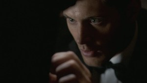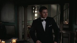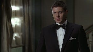 So, let’s dig into this episode, which with 15 years of hindsight, is actually pretty damn good! (And has Sam and Dean in tuxes, so what’s not to like?) In the ‘Then’ we get a reminder of who Bela Talbot is and that she shot Sam. And that Sam tried to make a deal with a Crossroads demon to save Dean, but it didn’t work. In other words, the Winchesters are in a bad place.