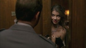 Bela covers for Dean not being in the room to go find the hand of glory when a guard knocks, answering it disheveled and grinning, and asking for a few more minutes, adding a “stop it, that tickles” as the door closes.