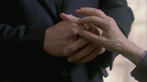 Gert tells them to let her know what else she can do, emphasis on the what else, then draws a finger slowly and deliberately along Sam’s finger like it’s definitely… something else, and Sam looks alarmed, trying to smile back.