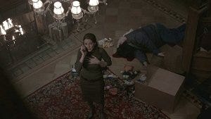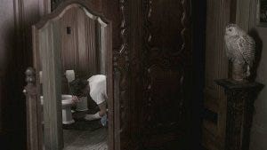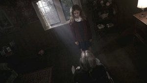 The whole episode is brilliantly shot, never fully lit and always looking just a little bit foggy, making the antique decor and dark wood just that much creepier. The creative camera angles add to the feeling that something is amiss here, sometimes looking up and sometimes down but rarely straight on.