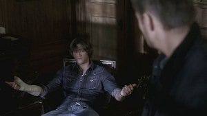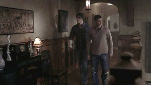 We start out with the reminder that something evil might be brewing in poor Sam, the underlying theme of Season 2 that’s impacting both brothers, Sam terrified that he might hurt someone and Dean terrified that he won’t be able to protect Sam.