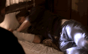 Dean interrupts him, doesn’t want to hear any more, can’t hear any more. He knocks Sam’s hands off him and shoves him down on the bed.