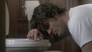 When he gets back to the room, Sam is puking in the bathroom and Dean is firmly in big brother mode and has no mercy, talking too loudly on purpose and detailing some disgusting sounding hangover recipes to make poor Sam heave again.