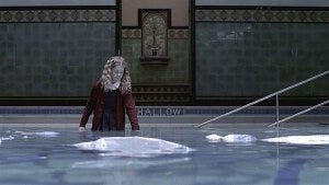 Maggie disappears just as Sam finally breaks through the glass, jumps over the railing and into the pool. Sam grabs her limp body and brings her to the surface – they break the surface together just like Dean did with Lucas in ‘Dead In The Water’.