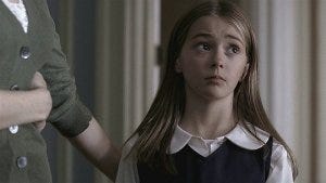 They drive past the Vacancy sign as the camera takes us back inside the now-deserted house, past the photos on the mantle of Rose and her nanny, upstairs and down the hallway slowly, with creepy music playing.
