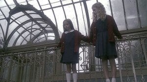 The exterior location for this episode is every bit as creepy as the rest of it – an old mansion from the 1930s now the Pierpont Inn. As movers take out boxes of stuff, we learn that it has a rich history in the community, with generations getting engaged or married there, but it’s now up for sale. As the moving guy takes out the boxes, we pan to two little girls sitting at the top of the stairs on the landing watching – and not very happy about the move.
