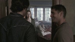 It works though; Susan lets them in. Dean slaps Sam on the back as they enter and Sam glares at him again.