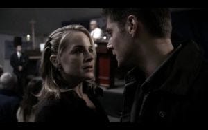At that moment, an attractive young woman named Layla (Julie Benz) who’s also hoping to be healed walks by and says hello, and Dean turns on the charm even if he doesn’t really feel up to it. It’s ingrained in his persona at the time, and also a performance to reassure Sam.