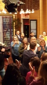 I didn’t actually relax until we managed to get inside the studio, and even though our seats were way off to the side, I was incredibly grateful just to be there. (I also haven’t done the whole studio audience thing, so the experience was fascinating). We were right by the entrance door to the studio, so we saw Clif appear and knew the fun was about to begin! Danneel and JJ came through the studio first, Danneel holding JJ’s hand as they crossed over to the other side to watch the taping, and that got a huge ovation from the Supernatural contingent of the audience. We were coached on hand signals that meant “clap” or “clap more” or “add some hoots and hollers” but when Jensen finally appeared, we didn’t need any coaching – our section of the room burst into screams of joy.