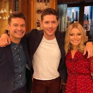 Jared then taped a segment with Ryan and Kelly too, which will air separately (by request of the show). I loved them telling Jared he’s the best looking man in a beanie, while they projected a graphic of Jared in a dozen different beanies and looking handsome as hell in every photo (Probably an intern spent a lot of time putting that together, but they could have just asked fandom!).