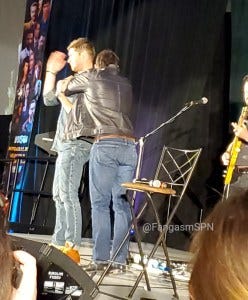 He couldn’t duck Misha’s tackle hug though, before they left the stage!