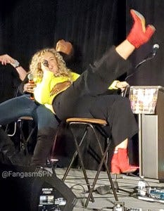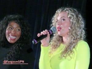 Briana and Lisa did their version of “Blow”, which Jensen and Lisa did at the last con, and it was just as mindblowing, Kim rocked out like the rockstar she is, and Ruth brought the house down with both her beautiful singing and graceful dancing.