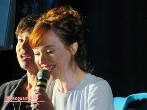 In the middle of the panel he tried to figure out what episode they were filming and Ruth came onstage to help.
