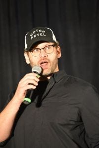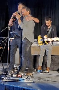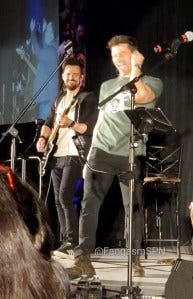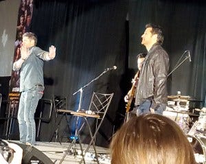It looks like Jason and Rob and the band did a bang up job with the intro, if these photos by fellow fan Barb are any indication. Rob in those glasses, mmmm. And a non-blurry shot of Billy Moran! Barb is clearly a better photographer than me – thanks for sharing, Barb!