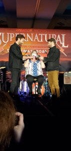 Before we had the Jared and Jensen afternoon panel, we also got some Alex Calvert, who always entertains me. He came onstage and accused Rob of blaming him for Dean’s death, much to Rob’s amusement.