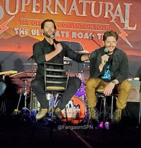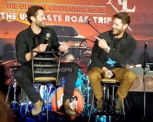 Jared and Jensen were in a good mood and mostly wide awake even for their gold panel, and the fandom was largely VERY pleased with their wardrobe choices too. Just sayin. Me included.
