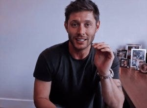 A few days later, Jensen made some fanboy dreams come true (his own) by participating in a Zoom table read with the cast of Dazed and Confused, one of his favorite films. He looked so happy to be acting opposite Matthew McConaghey, wearing his The Boys shirt and looking hot as hell and generally kicking ass. Once again, the cast had a blast, and their joy was infectious.