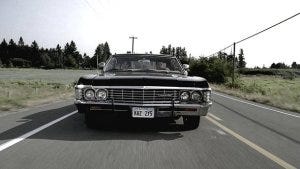 Cut to our boys, and one of the most iconic Supernatural songs ever, AC/DC’s ‘Back In Black’. The car roars down the road, Dean behind the wheel, enjoying his (now restored to her full beauty) baby. By this time, the show knew how much the fandom loved what we at the time called “the Metallicar” and lingers on her shiny chrome and sleek black exterior. We know what Dean sees in her; we see it too.