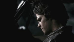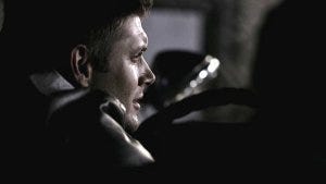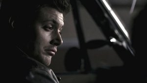 Sam gets in the car, but Dean pauses for a moment, staring at nothing, taking in what Sam just said and all that just happened. A happy accident caused a lens flare in Serge Ladouceur’s beautiful photography and makes this an iconic moment, and one of the most gorgeous shots of Dean Winchester ever.