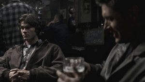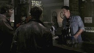 The Winchesters head to a local bar looking for more information, and exchange worried looks in the car about I can’t remember what.