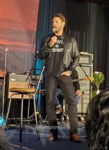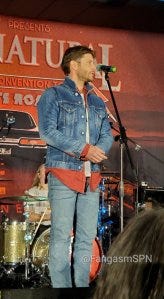 The afternoon panel started out with me getting unexpectedly emotional (and Jensen too) when he went to do the traditional kick off jump and looked over for Jared as he always does – only to see that he wasn’t there.