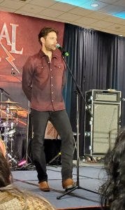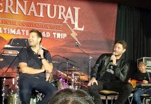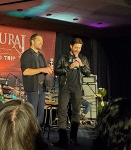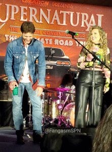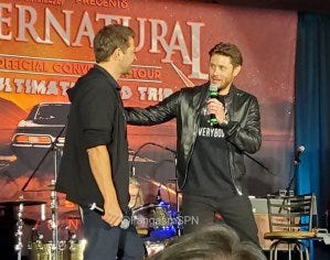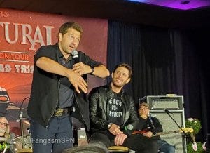 At the time of this con, both Misha and Jensen were hoping that their respective pilots (for Gotham Knights and The Winchesters) got picked up. Jensen said he was flying back to the set of The Winchesters in New Orleans that night.