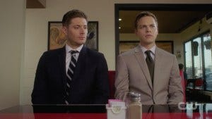 They interview the uncooperative (and sassy) waitress while Jack is rather adorably awkward and clueless. Alex Calvert pulls this off perfectly, and Jensen Ackles’ reactions to it are equally on point.