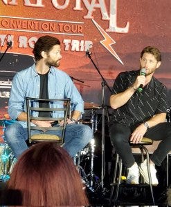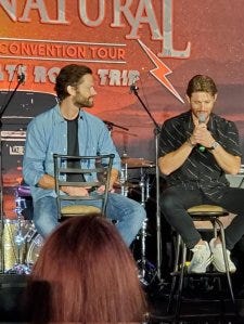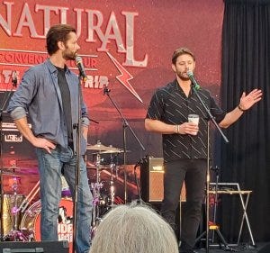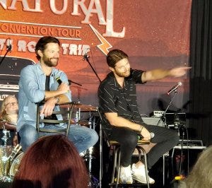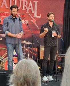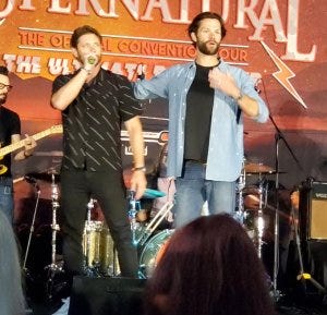 There were of course shenanigans – I don’t know what Jensen was trying to do or who he was trying to get to here, but Jared mock held him back. They slip into acting things out seamlessly still – I think they miss playing off each other on set, but they still get to on stage.