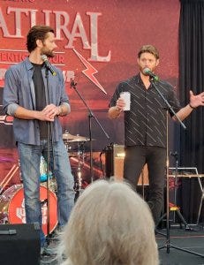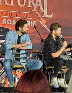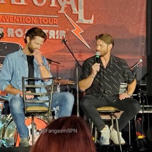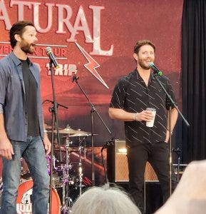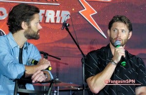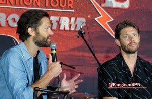 One of the funny moments was when a fan related the story of finding out she was pregnant while watching Supernatural. Jensen did a hilarious imitation of the woman running to take a pregnancy test during a commercial while watching the show.