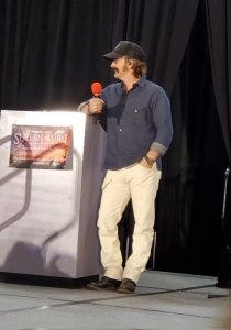 Friday was a short day for me because I spent most of it either flying or having lunch with my friends. The hotel had an outdoor patio with trees and water and cornhole and it was absolutely lovely, so we grabbed a big table out there and just caught up. I made it into the convention center in time to catch some of Adam Fergus’ panel and hear his story about being scared of everything as a kid, including the werewolf he was sure he saw at night that turned out to be a hat and coat on the bannister.