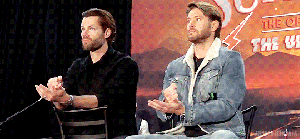 The gold panel found Jared in black on black and Jensen in denim on denim and both of them looking gooooooooooooooooood. Just sayin.