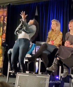 Ruth said her goal was not to sing on key at the SNS but to commune with all of us. She writes about her anxiety about singing and how the SPNFamily helped in her chapter of Family Don’t End With Blood.