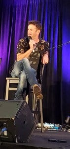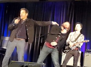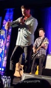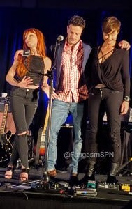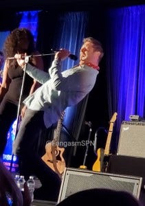 If that wasn’t amazing enough, he then sang a song I hadn’t heard before (‘Blow’) and turned into a rockstar right before our eyes! If we weren’t already thoroughly blown away, Ackles singing “Supernatural freaks” and pointing to the audience and then belting out the lyrics “Pull my trigger, let me blow your mind!” then let’s just say that did it all right. Minds blown. Lisa Berry joined him for the third verse, everyone rocked their assess off, and it was downright amazing.