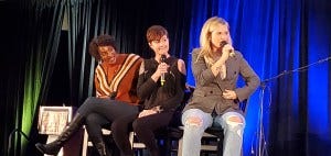 We got a Ruth Connell between the gold and main J2 panels. Ruth loved the song that Jensen and Lisa sang the night before as much as we did, and also the beautiful rendition of Hallelujah by Jason and Rob.