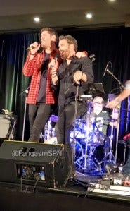 Toronto is always a special place for the Supernatural gang to come back to. It was the con where long ago Jensen came back onstage after everything had wrapped up and picked up an acoustic guitar and sang a few songs for those of us lucky enough to still be in the ballroom. It was the con where Rob Benedict had his stroke, and his fellow Supernatural cast members saved his life. It was the con where, the very next year, Rob’s friends all put on a concert in his honor as he continued to recover and the Saturday Night Special started to become the emotional thing that it is today.