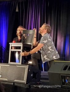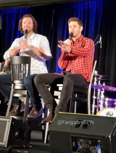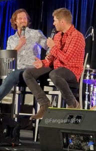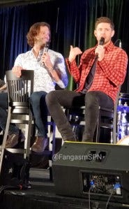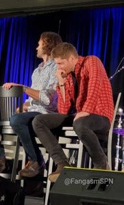 Jared and Jensen’s main panel also brought a lot of laughs and also some genuine emotions. Jared didn’t have a chair when they took the stage, so Jensen got him one and set it up for him just the way he likes.