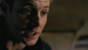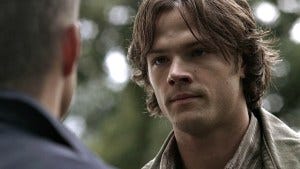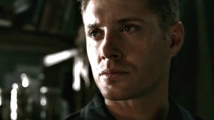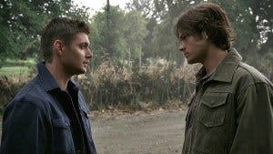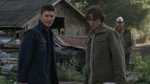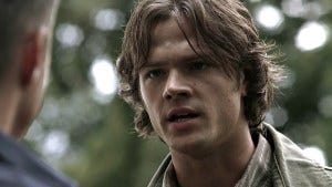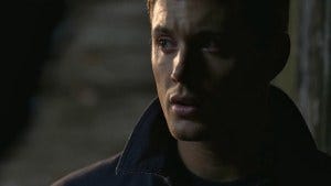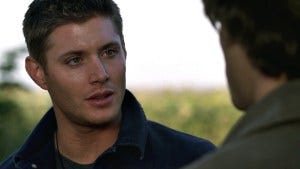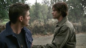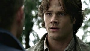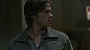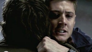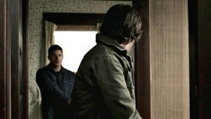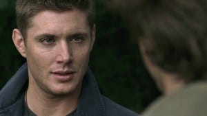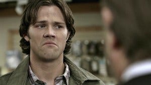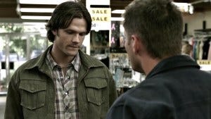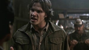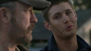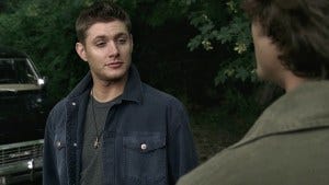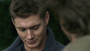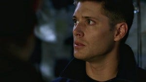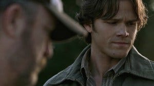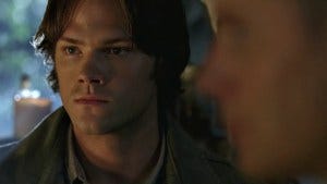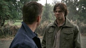 Dean finally turns to walk away and Sam grabs him by the sleeve and pulls him back, exasperated.